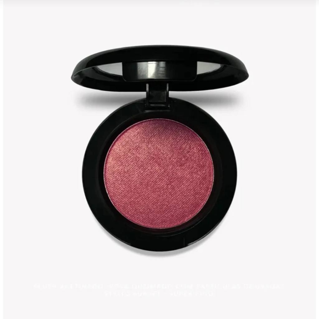 Blush Rosa avermelhado ,compacto, acetinado com partículas do douradas - EFEITO SUNSET.